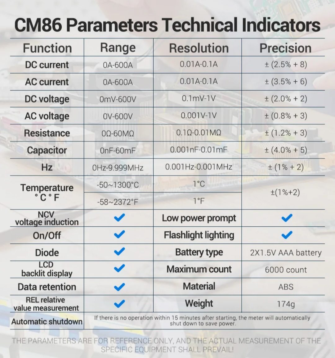 | Product code | ANENG CM86 |